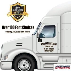 Truck Door USDOT Company Name Lettering Sticker Decal (Set of 2)